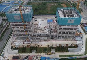 無(wú)人機(jī)拍攝的柳東新區(qū)標(biāo)準(zhǔn)廠(chǎng)房D區(qū)工人在大型機(jī)械的輔助下搭建廠(chǎng)房鋼架結(jié)構(gòu)“我們工地2月...
