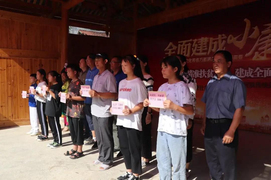 儀式上,集團(tuán)各基層黨支部幫扶責(zé)任人分別給40名在2020年小升初、中考、高考中取得優(yōu)異成績的高武村籍貧困學(xué)生送上獎助學(xué)金。本次獎助學(xué)金是由東城集團(tuán)公益助學(xué)基金和高武村村民合作社經(jīng)濟(jì)收益中各拿出2.5萬元和2萬元,總計(jì)4.5萬元。