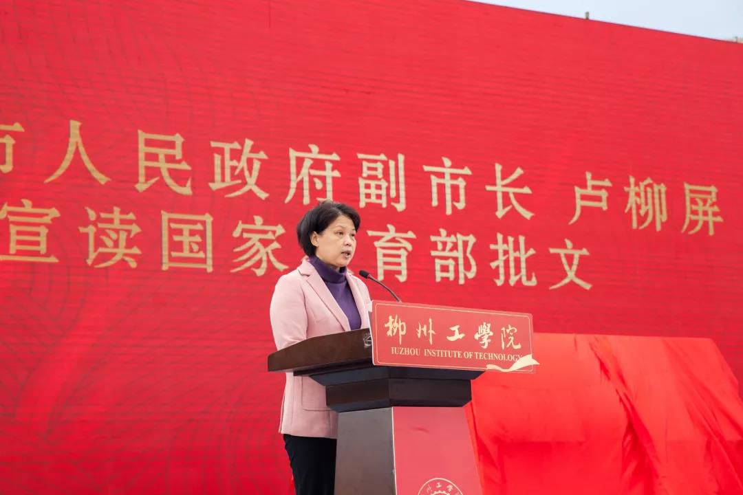 盧柳屏宣讀教育部同意柳州工學院轉設的批文。2020年4月,學院經教育部批準轉設為獨立設置的普通全日制本科高校,更名為“柳州工學院”,定位為工科為主、多種學科協(xié)同發(fā)展,以服務地方經濟建設和社會發(fā)展為辦學理念的應用型本科高校。