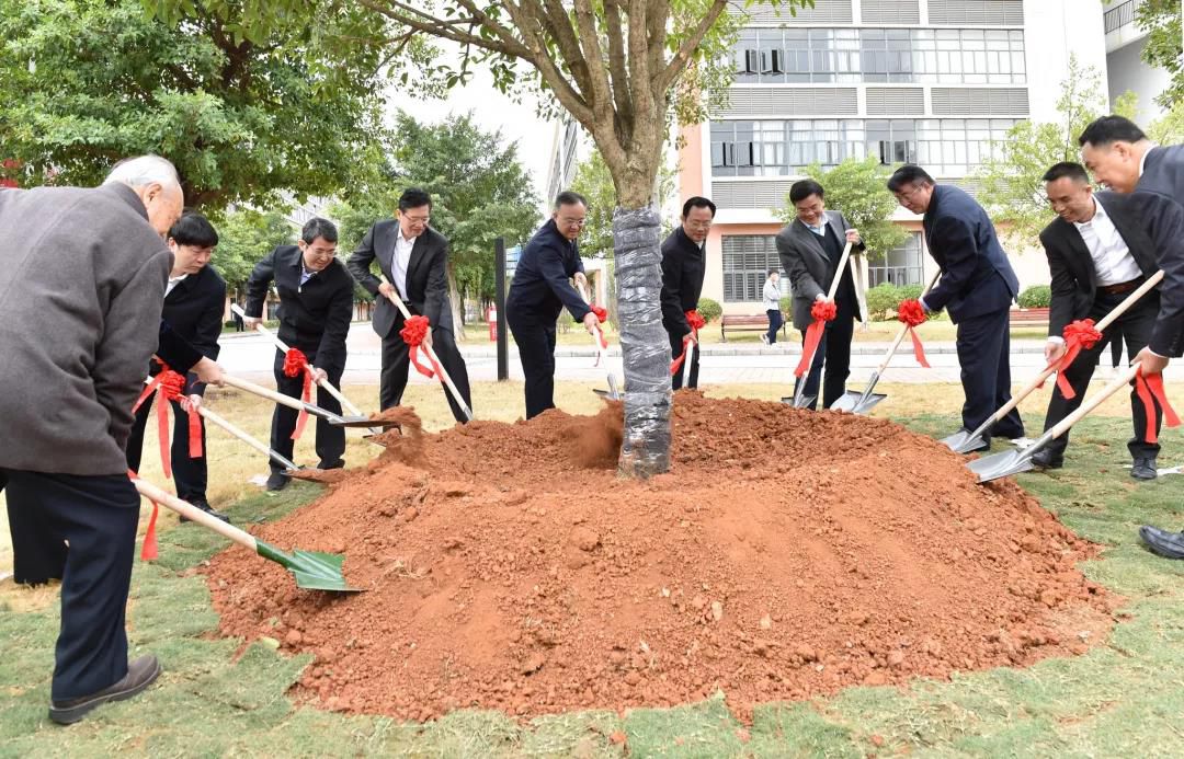 與會領導共同為柳州工學院植下象征“立德樹人”的樹木