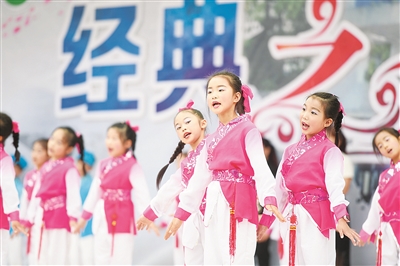 在景行小學柳東校區(qū),小學生們誦讀經(jīng)典。